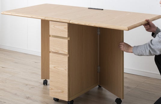本製品は天板内部に伸長パーツの格納場所があるため見た目のデザインも損なわず、別途伸長パーツの保管スペースもとらないところもポイントです。