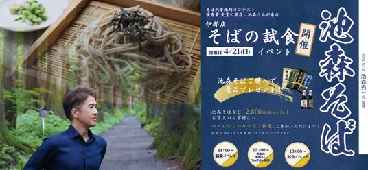 株式会社綿半ホームエイド(長野県長野市 代表取締役社長:牧島禎彦)は、ロックバンドDEENのヴォーカリスト池森秀一氏がプロデュースした「池森そば」の販売促進キャンペーン「大陳コンテスト」で準グランプリを受賞した綿半スーパーセンター伊那店にて、池森氏を招いた試食イベントを 4月21日(日)に開催します。