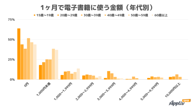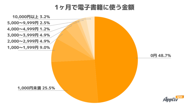 1ヶ月に電子書籍に使う金額は「0円」が48.7%で最多。1,000円以上課金する人は約4割。