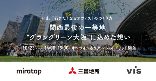 ワークデザインを手がける株式会社ヴィス(本社:東京都港区、代表取締役社長:金谷智浩、以下ヴィス)は、2024年10月23日、移転プロジェクトをサポートしている株式会社ミラタップ(本社:大阪市北区、代表取締役:山根太郎、以下ミラタップ社)がグラングリーン大阪を移転先として選んだ背景やグラングリーンの魅力について、トークディスカッション形式でお届けするセミナーを開催いたします。