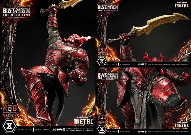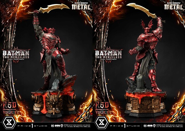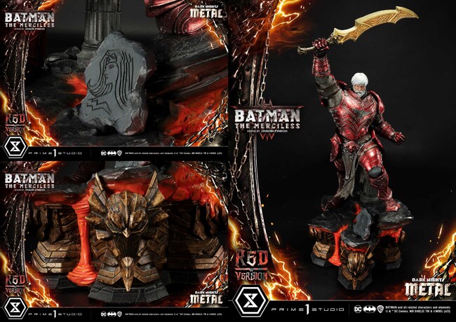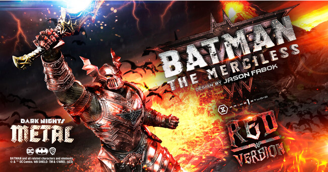 DCコミックス『ダークナイツ:メタル』に登場する、悪に魅入られたブルース・ウェインのひとりマーシレス。プライム1スタジオの10周年を記念して、限定カラー「レッドバージョン」が登場!