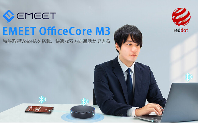EMEET M3 会議用マイクスピーカーの金属外観は、全体的に滑らかで自然なラインになっており、洗練された革新的なデザインで、世界三大デザイン賞の一つである、「レッドドット賞」を受賞しています。また、Bluetooth 5.0を搭載し、2つのデバイス間で自由に音楽や会議通話を切り替えることができ、より良い体験を実現しています。
