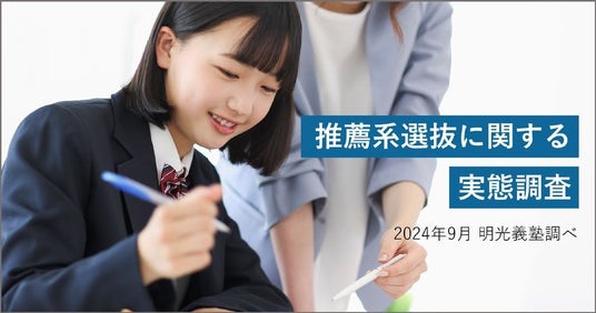 個別指導の学習塾「明光義塾」を全国展開する株式会社明光ネットワークジャパン(本社:東京都新宿区、代表取締役社長:山下 一仁)は、進学希望の高校生の子どもを持つ全国の保護者840名を対象に、「推薦系選抜に関する実態調査」を実施いたしました。