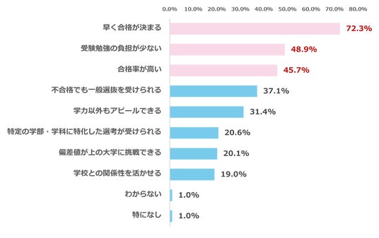 保護者が考える推薦系選抜のメリット、最多回答は「早く合格が決まる(72.3%)」