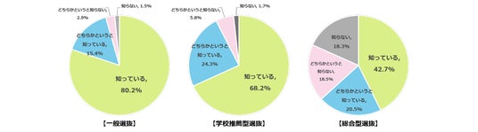 大学入試方式に対する保護者の認知度、一般選抜 95.6%、学校推薦型選抜 92.5%、総合型選抜 63.2%