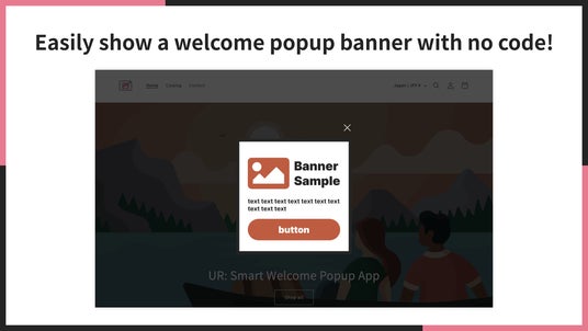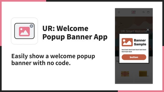 「UR: Welcome Popup Banner App」は「シンプルウェルカムポップアップバナーアプリ」の海外版 Shopify アプリです。「UR: Welcome Popup Banner App」を利用することで、以下のような便利な機能を活用し、ストア訪問者へのアプローチを強化できます。