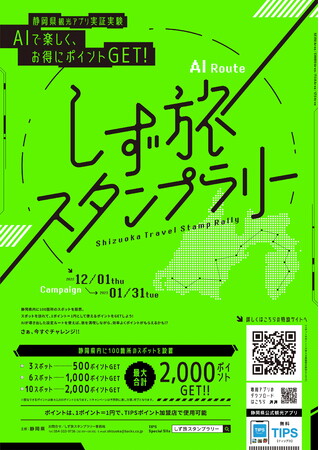 AI最適化ルートで静岡県内観光スポットを巡り、「TIPSポイント」(電子商品券)最大2,000ポイントをゲット!!