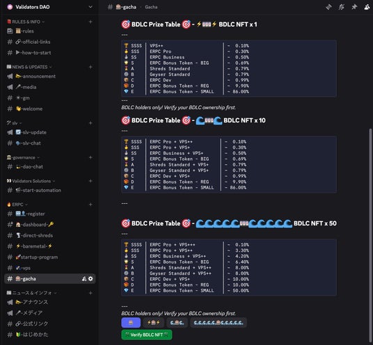 すでに認証済みのBDLC NFTホドラーの皆様も、「スーパーホドラーズボーナス」のご利用には再度の認証が必要となります。お手数をおかけしますが、Validators DAO公式Discordで再認証をお願いいたします。