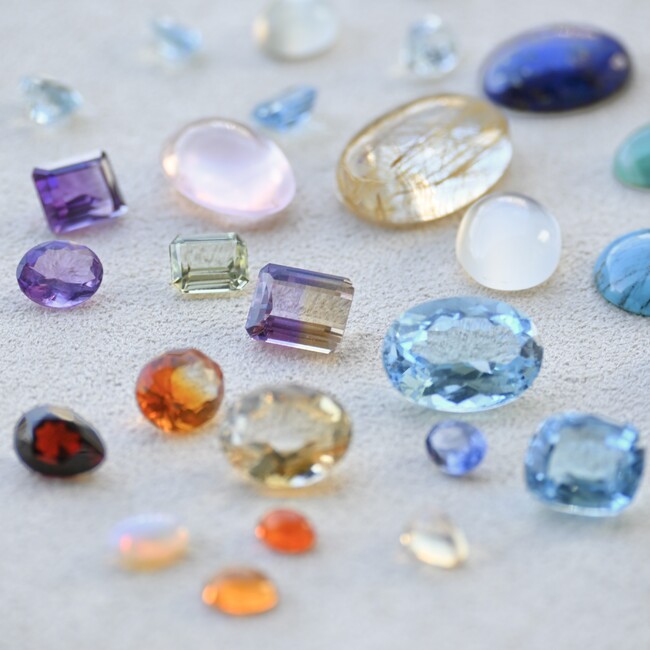 会期中の3日間限定で、お好きなルース(天然石)とアイテム(ピアス、リング、ネックレス)をそれぞれお選びいただき、世界に一つだけのジュエリーが作れる「カスタムジュエリー」のオーダーを承ります。