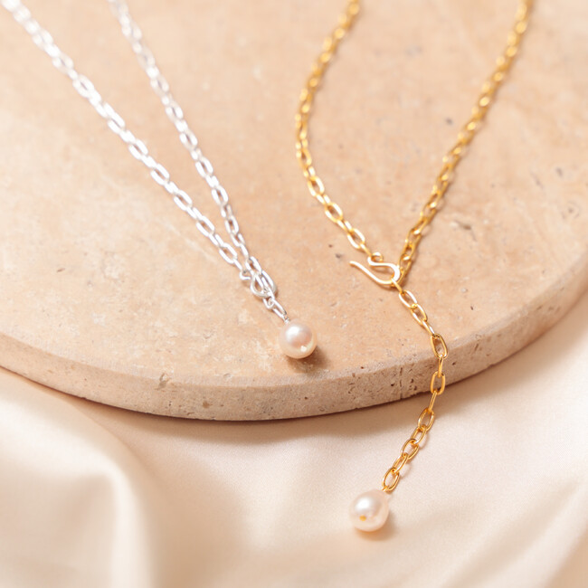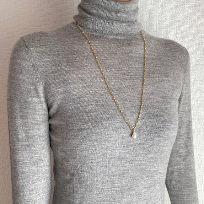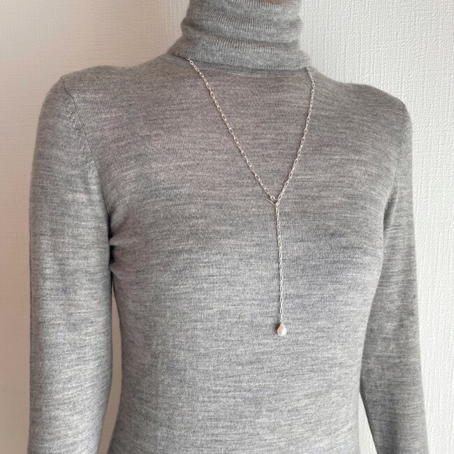 12月に仲間入りしたばかりの、アコヤパールがあしらわれた3wayチェーンネックレスもご用意。先端のフックで長さ調節や、お好きな形にアレンジができるため、お手持ちのネックレスと組み合わせることでいつものスタイルをより華やかにすることができます。胸元でVラインをつくれば、すっきりシャープな印象に。先端のパールがさりげない上品さを演出してくれます。