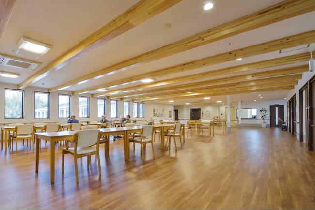 「意匠性」としては、柱や梁などの木材を見せることで優しく柔らかな室内空間の演出が可能です。保育園や高齢者施設などからの採用が増えてきています。
