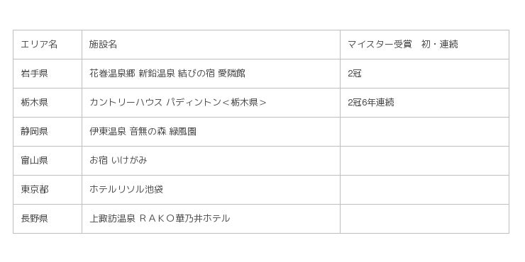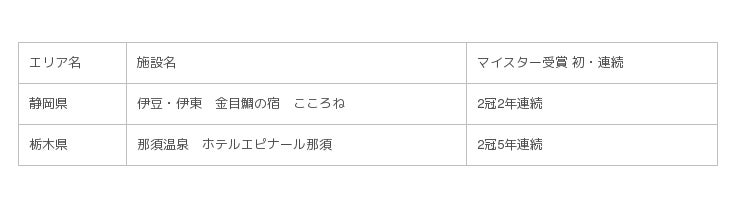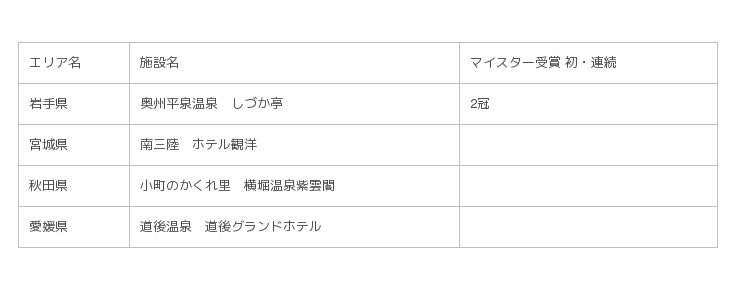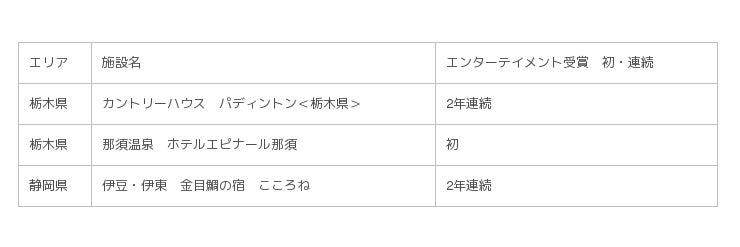 - マイスターの最高峰「エンターテイメント賞」を3施設が受賞 -