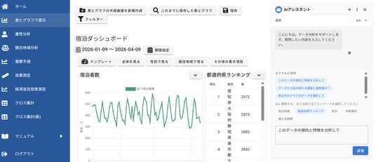 DMO・自治体観光担当者向けダッシュボードデータ分析・施策立案をサポートする対話型AI機能