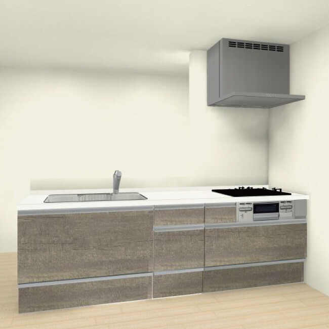 空間の広がりを邪魔しないデザインのレンジフードや、浄水・シャワー・原水をスムーズに切替可能な浄水器一体型の水栓を採用。