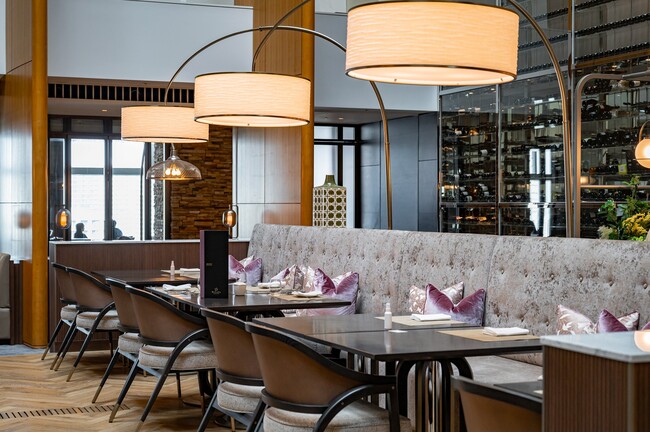イタリアングリル「メロディア」は、音楽の要素である“メロディ”をイメージした温かみのあるデザインで、しつらえには音符や五線紙などがいたるところに散りばめられています。6層分の吹き抜けの開放的なアトリウムは、朝は爽やかな陽射しが差し込み、夜はキャンドルライトがきらめく心地よい空間に。長さ26メートルのガラスブリッジが美しく光を反射します。ブレックファストからランチ、ディナーと旬の食材を最大限に活かしたアートのようなプレゼンテーションで優雅な時間を演出します。