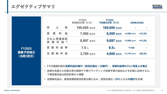 2025年通期計画について、当期2度目となる業績予想修正を行います。営業利益を85億円(前回計画比+10億円)、営業利益率を8.5%に上方修正いたします。