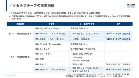 バイセルグループとしての出張訪問買取事業、店舗買取事業の連結内訳は以下の通りとなります。