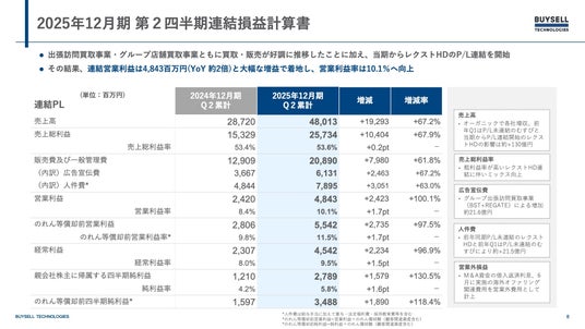 リユース事業を展開する株式会社BuySell Technologies(本社:東京都新宿、代表取締役社長兼CEO:徳重 浩介)は、本日2025年12月期 第2四半期決算を開示しました。