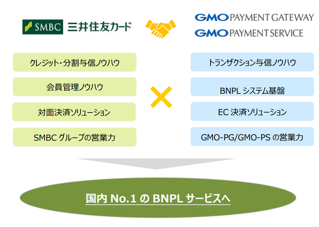 新サービスは、GMO-PGがグループでこれまでに培ってきた後払い決済サービスのノウハウとシステム基盤をベースに、 三井住友カードが培った50年を超えるクレジットカード事業の与信・分割払いのノウハウを加えることで、これまでにない新しいBNPLのサービスを事業者・利用者の双方に提供します。