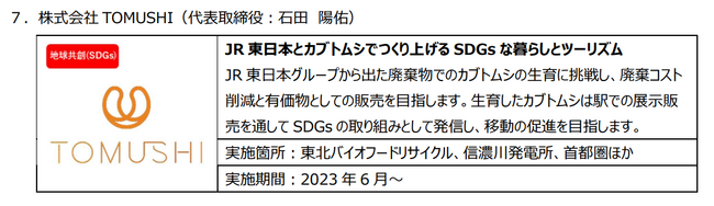 ○東日本旅客鉄道株式会社(代表取締役社長:深澤 祐二、以下「JR東日本」)とJR東日本スタートアップ株式会社(代表取締役社長:柴田 裕)は、ベンチャー企業や優れた事業アイディアを有する方々との協業によるビジネス創造活動 「JR東日本スタートアッププログラム」を進めてきました。