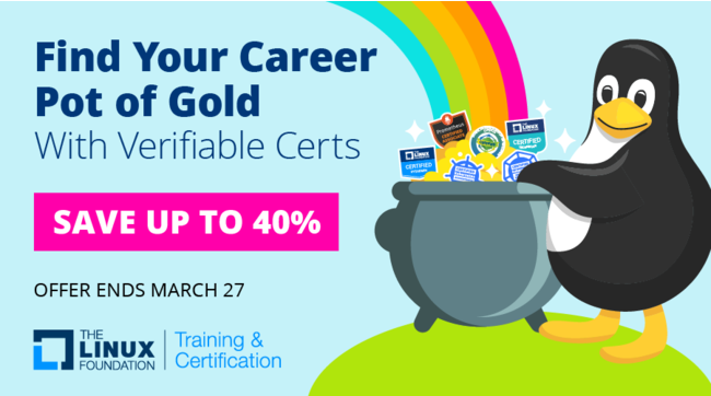 Linux Foundationのトレーニングと認定試験で、虹の先にあるキャリアの宝庫を目指しましょう。自分自身とキャリアへの投資を後押しする最大40%割引キャンペーンが始まりました。