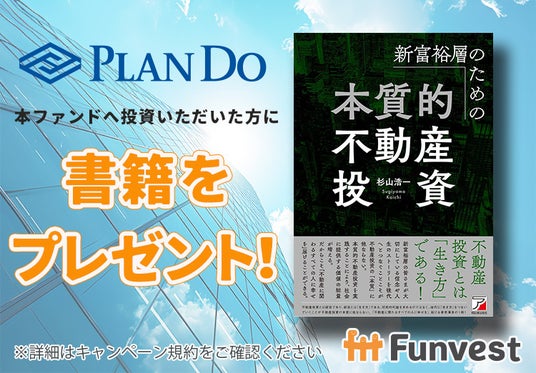 本ファンドに出資いただいた方全員にもれなく、株式会社プラン・ドゥ代表取締役 杉山浩一著『新富裕層のための本質的不動産投資(税込 1,650円相当)』をプレゼント!