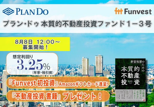 「未来をわかちあう投資」を提供する「Funvest(ファンベスト)」(以下、Funvest)は、「プラン・ドゥ 本質的不動産投資ファンド1-3号」(以下、本ファンド)の募集を8/8より開始しますので、お知らせいたします。