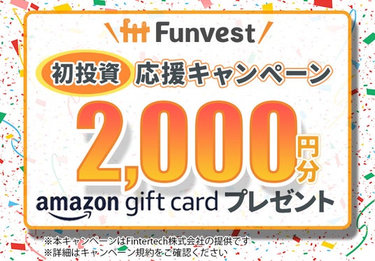 Funvestにまだ投資したことのない方が本キャンペーンの対象となります!会員登録はしてるけどまだ投資したことがない…。ぜひこの機会にFunvestで投資をはじめてみませんか?