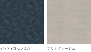 左官仕上げのような質感を表現したインディゴカラー、砂岩をイメージしたグレージュカラーなど、表情豊かな雰囲気をお楽しみいただけます。