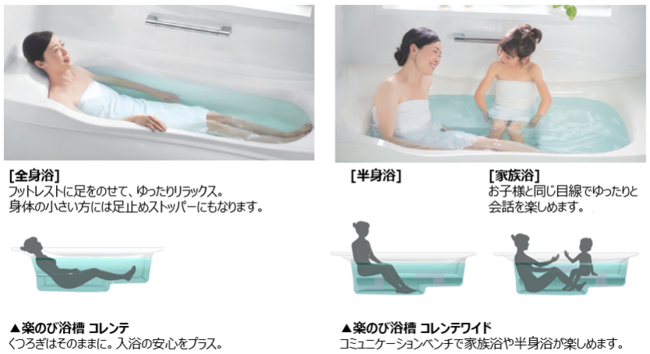 エストワの浴槽は、またぎ高さを従来の浴槽よりも約6cm低く設計した「楽のび浴槽 コレンテ・コレンテワイド」。