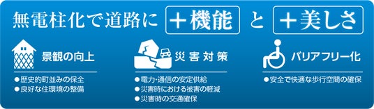 情報化社会の進展とともに情報ネットワークが広がり、無電柱化の重要性は高まる一方です。電線類を地中化することは、景観の向上だけでなく、地震などの災害時に情報通信回線の被害を軽減し、ネットワークの安全性・信頼性を向上させることができるため、街や道路の耐震、災害対策にもつながります。