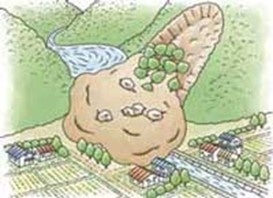 河道閉塞の様子。川の流れが土砂でせき止められ、上流側に水がたまる(資料提供 NPO法人土砂災害防止広報センター)