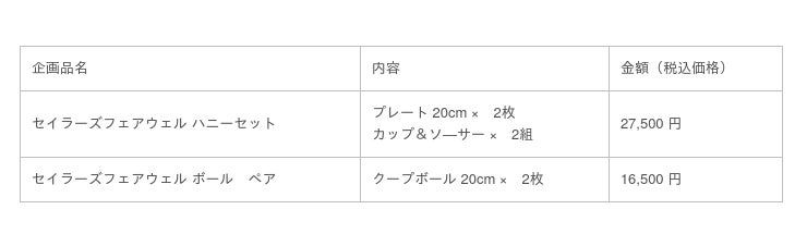 セイラーズ フェアウェルを 店頭にて 税込価格 16,500円以上ご購入の方にセイラーズ フェアウェル ミニ ソース ディッシュ(数量限定 非売品)をプレゼント。