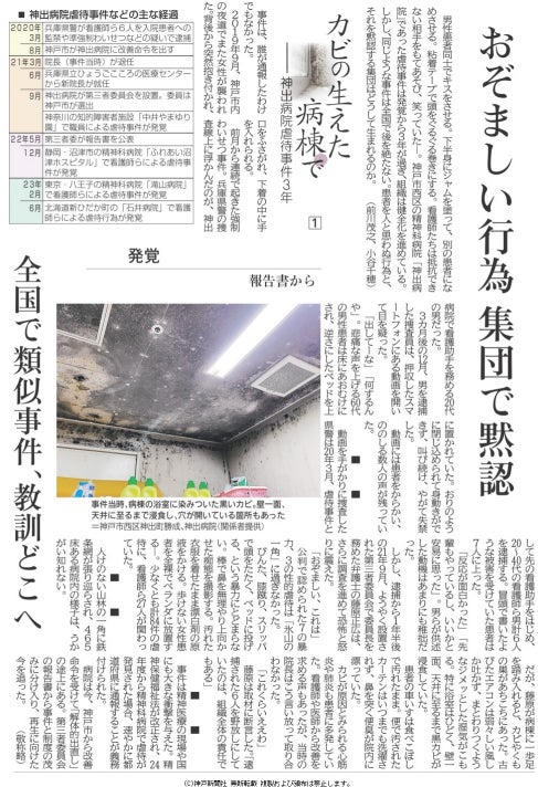 毎日新聞出版から2024年6月24日に出版されました『黴の生えた病棟で ルポ 神出病院虐待事件』が好評につき発売半月で第2刷が決定。重版が出来上がりました。「組織における五つの虐待トリガー」をひも解き、全国で相次ぐ精神科病院の患者虐待に潜む構造にメスを入れた一冊です。
