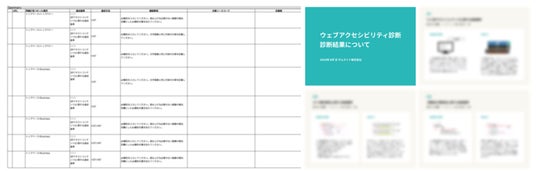 その後およそ1~2週間かけて、「ウェブアクセシビリティ診断結果」「課題抽出・改善案」をレポートし、オンライン会議にて診断結果をご報告します。