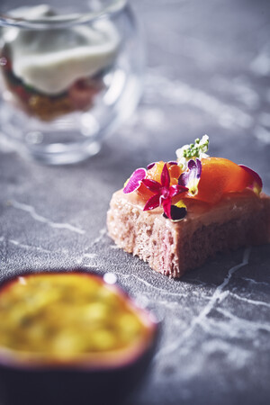・スモークサーモンとクリームチーズのブーケタルティーヌ ローズヒップフレーバー