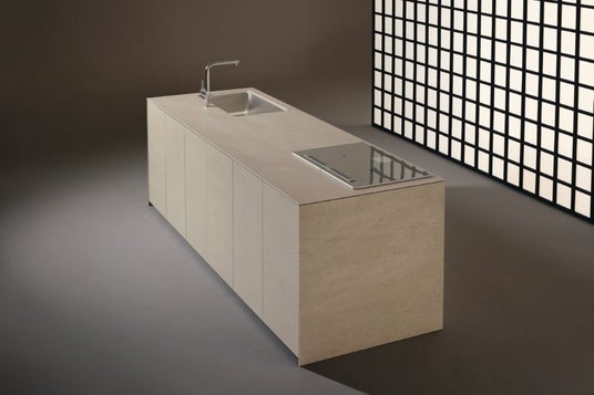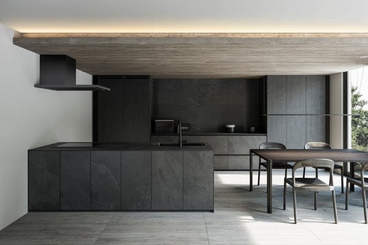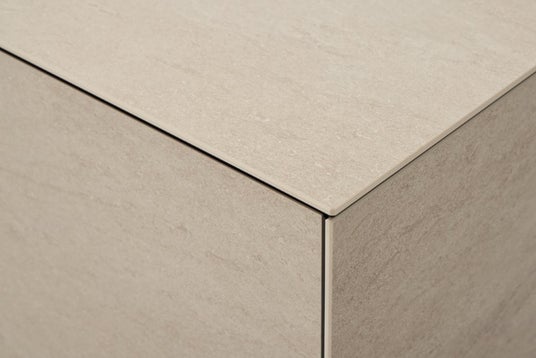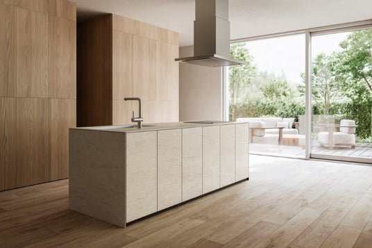 ワークトップ・扉・サイドパネルのすべてに同一のセラミック素材を使用。素材・色・質感が空間全体で統一されることで、まるでひとつの塊を切り出したような圧倒的な存在感を生み出します。キッチンそのものがインテリアの主役となる究極のノイズレスを追求しました。