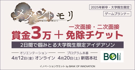 『メメントモリ』など大ヒット作品を手掛ける会社の現役ゲームプランナーがメンターに!成績優秀者は25卒本選考の一次・二次面接をスキップする特典も