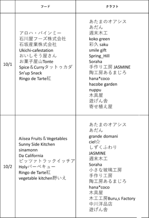 出店者は、メッツァの自然豊かなロケーションでのマルシェ開催に共感いただいた、フードやクラフトの分野で、こだわりや熱意をもった方々が集います。