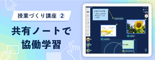 共同編集機能「共有ノート」を使った協働学習の手法や事例が学べます。詳細 〉