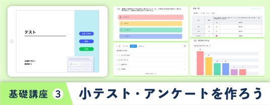 テスト・アンケートの作成方法が学べます。詳細 〉