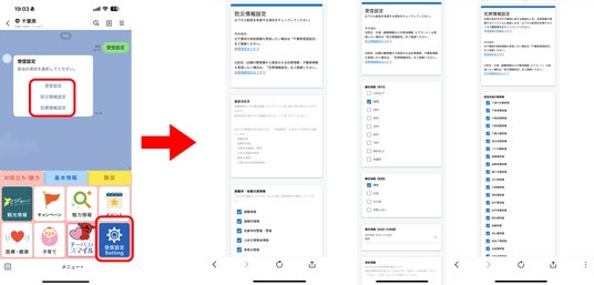 LINEに登録したユーザーは受信設定に回答することで、受け取る情報のカテゴリーをカスタマイズすることができます。