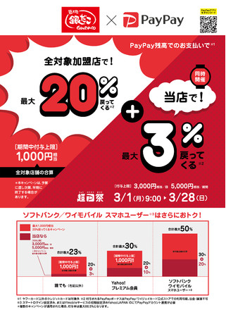 さらに!全加盟店対象の 「だれでも +20%戻ってくるキャンペーン」(2021年3月1日から3月28日まで。期間中付与上限:1,000円 https://paypay.ne.jp/event/matsuri202103-return/ )も同時開催されますので、ぜひこの機会に築地銀だこでお得に!ご利用ください!