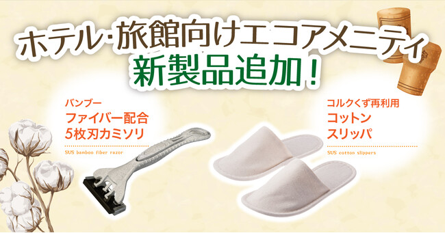 オリジナルグッズを製作するアイグッズ株式会社(本社:東京都渋谷区)は、2023年3月、当社オリジナルのサステナブルアメニティグッズシリーズ第八弾をリリースしました。今回販売開始する商品は、バンブーファイバー配合5枚刃カミソリ『SUS bamboo fiber razor』、コルクくず再利用コットンスリッパ 『SUS cotton slippers』です。