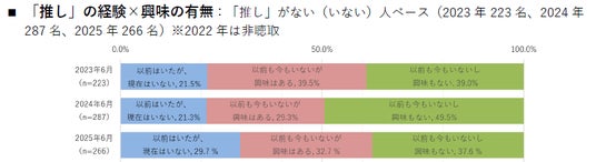 「推し」がない(いない)人の「以前はいたが現在はいない」が昨年より8.4%増加。