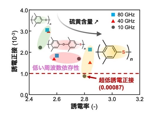 ● 高周波電気信号への応答性が低い硫黄を含む高分子を基盤構造に、世界最高水準の低誘電特