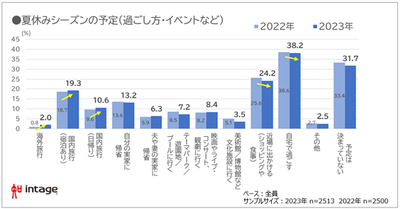 株式会社インテージ(本社:東京都千代田区、代表取締役社長:檜垣 歩、以下インテージ)は、全国の15歳から79歳の男女(2,513人)を対象に2023年6月26日~6月28日に実施した夏休みに関する調査結果を公開します。