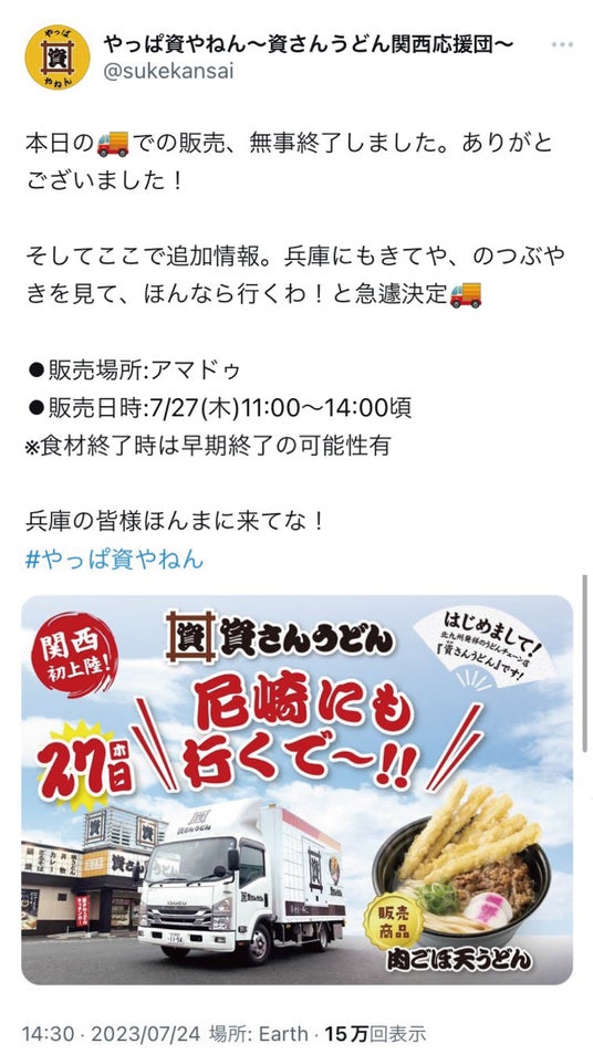 北九州で約40年に渡り愛される資さんうどんを展開する、株式会社資さん(本社:福岡県北九州市、代表取締役社長:佐藤 崇史)が、3/13(水)資さんうどん 尼崎アマドゥ店をグランドオープン!