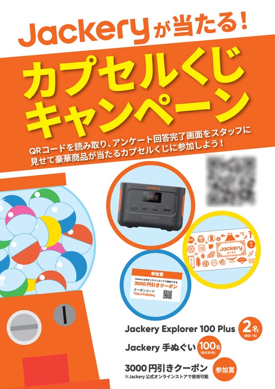 Jackery ポータブル電源とソーラーパネル各製品の展示に加え、Jackeryが当たるカプセルくじキャンペーンも