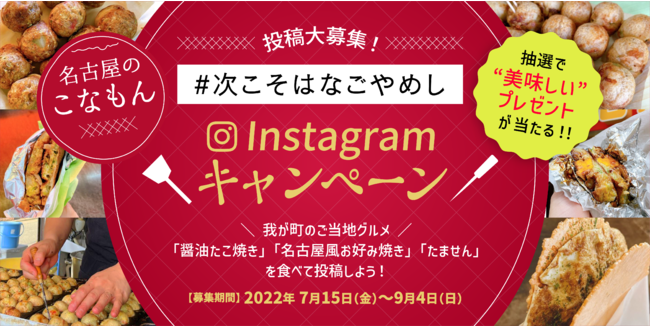 3つのグルメのいずれかを食べて、『#次こそはなごやめし』と共通の合言葉をつけて写真を投稿することで、美味しいプレゼントが抽選で当たるキャンペーンを開催いたしますので、皆様是非ご参加ください。
